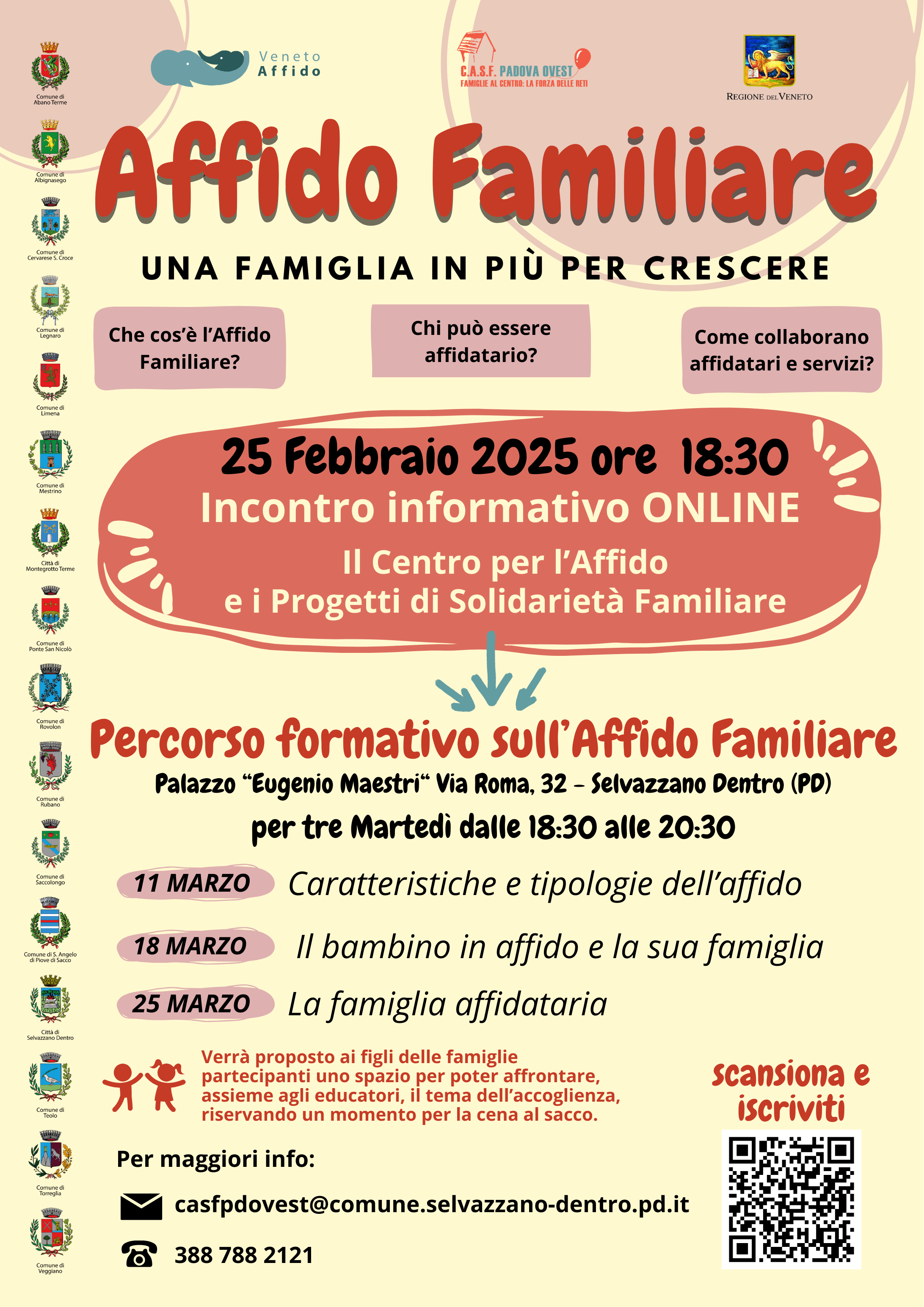 E' gradita l'iscrizione al seguente link "ISCRIVITI QUI" o via email a casfpdovest@comune.selvazzano-dentro.pd.it.